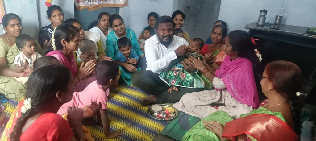 ఈ కార్యక్రమంలో మార్కపురి ప్రసన్న లక్ష్మీ, అంగన్వాడి టీచర్లు కె.అరుణ ఎస్.జయసుధ, తల్లులు గర్భిణీలు బాలింతలు, కమిటీ సభ్యులు కాలనీవాసులు పాల్గొన్నారు.