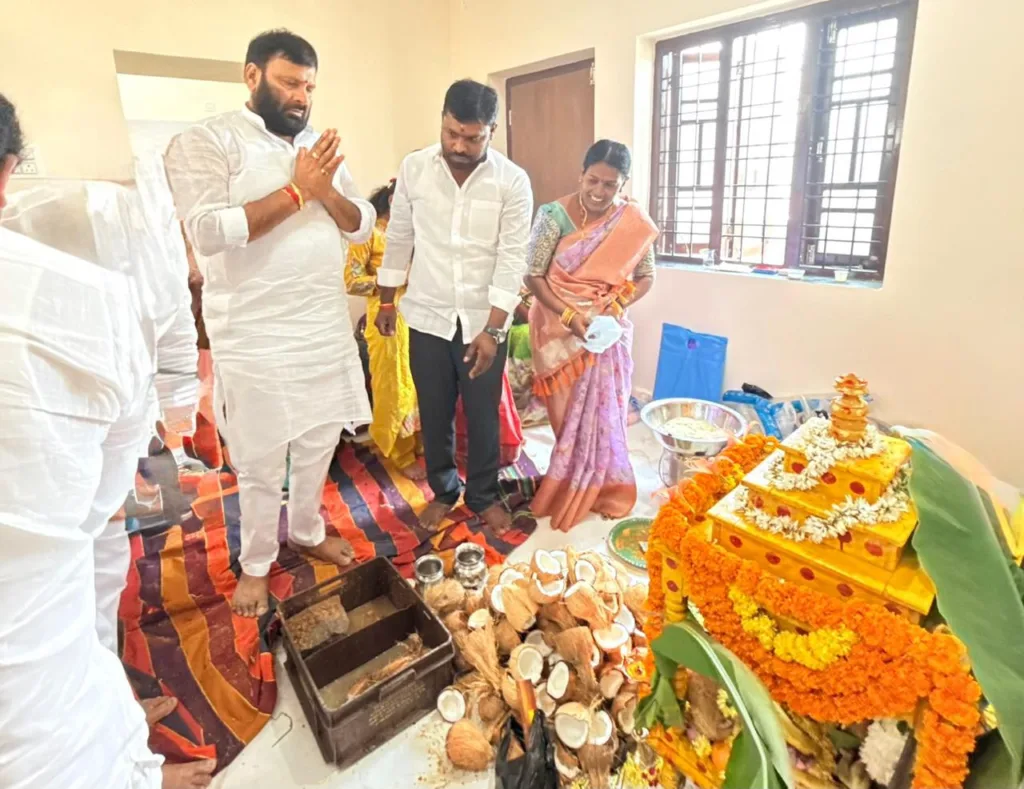 గృహప్రవేశ వేడుకల్లో పాల్గొన్న మాజీ శాసనసభ్యులు కూన శ్రీశైలం గౌడ్…..