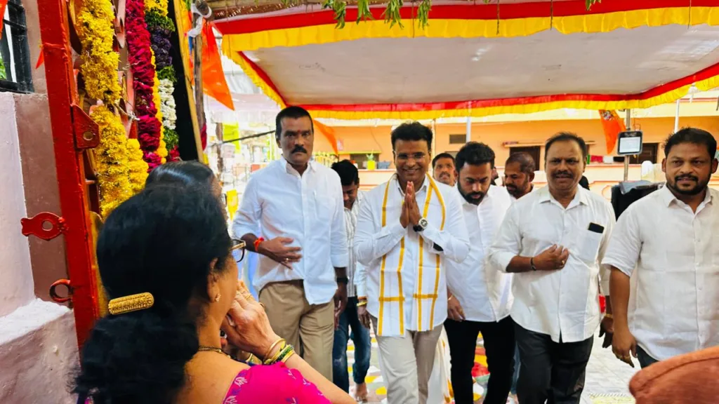 127 – రంగారెడ్డినగర్ డివిజన్ ఆదర్శ నగర్ లోని శ్రీశ్రీశ్రీ అలర్మేల్ మంగా పద్మావతి సమేత శ్రీ వెంకటేశ్వర స్వామి దేవస్థానం 28వ వార్షిక బ్రహ్మోత్సవ వేడుకలకు బిఆర్ఎస్ ఎల్పి విప్, ఎమ్మెల్యే కేపీ. వివేకానంద్ ముఖ్యఆతిధిగా హాజరై స్వామివారికి ప్రత్యేక పూజలు నిర్వహించారు.