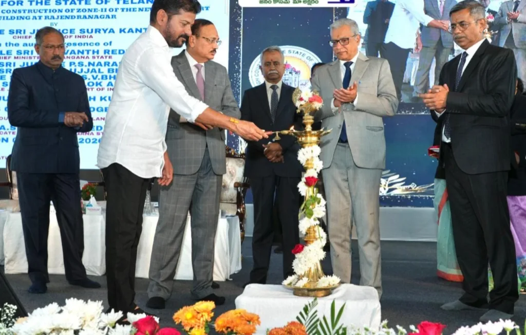 రంగారెడ్డి జిల్లా రాజేంద్రనగర్‌లో తెలంగాణ రాష్ట్ర హైకోర్టు జోన్-II నూతన భవన నిర్మాణ పనులకు సుప్రీంకోర్టు ప్రధాన న్యాయమూర్తి జస్టిస్ సూర్యకాంత్ శంకుస్థాపన చేసిన కార్యక్రమంలో ముఖ్యమంత్రి పాల్గొన్నారు.